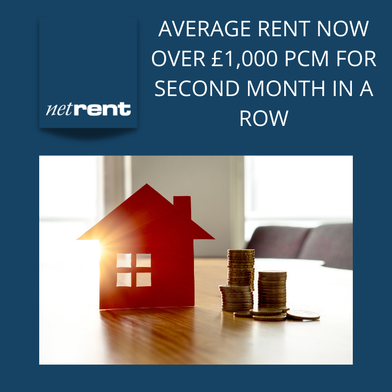 The average rent in the UK is now at a record high of £1,029, up 6.6 per cent on the